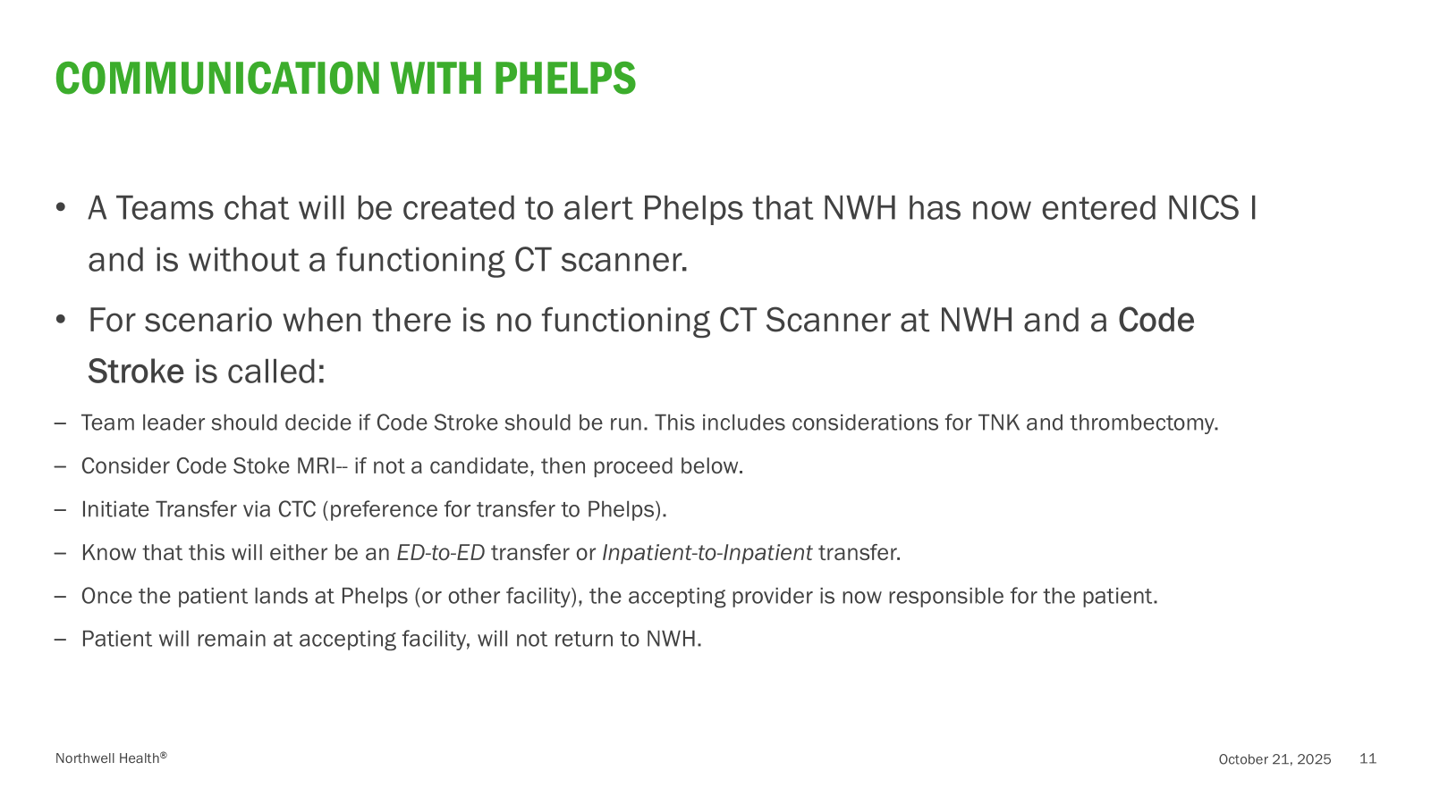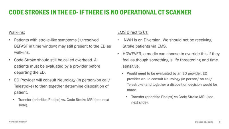 Code Stroke – No operational CT